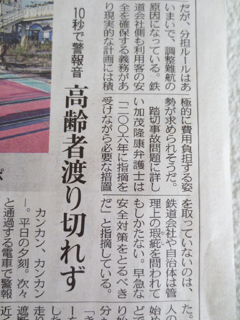 これは今年8月に高齢者がはねられて死亡した横浜の踏切です。足腰の弱ったお年寄りでは、渡りきれないのは当然でしょう。